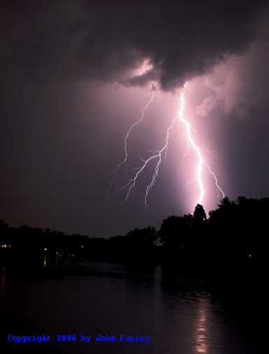 As a thunderstorm approached, I was able to get this photo of cloud-to-ground lightning looking across Dunlap Lake in Edwardsville, IL. This photo was taken in September, 2005. It was my first successful capture of lightning using a time exposure, and is still one of my favorites.