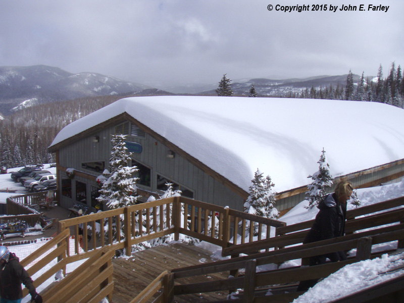 This picture of the rental and ski shop building shows how much snow piled up on top of the building.
