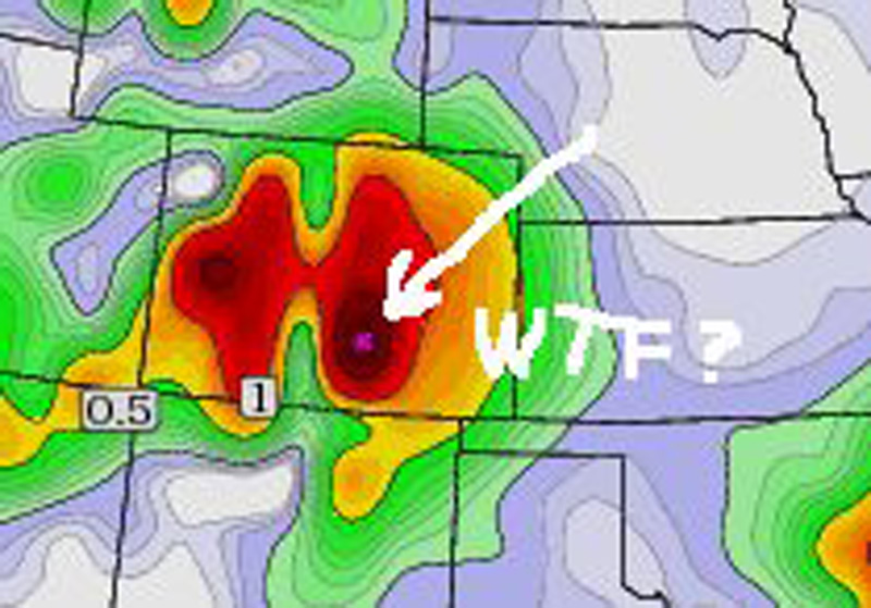 This map, provided courtesy of Matt Sellers via his Facebook page (with his editorial comment, lol), picks up well on the idea of very heavy snow in both the eastern and western mountains, as well as the Front Range cities just east of the mountains.