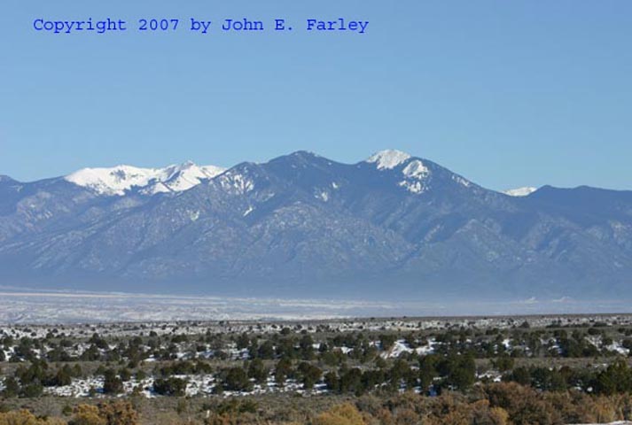 The next set of pictures feature the Sangre de Cristo Mountains farther north, around Taos and Eagle Nest. The desert around Taos did not receive as much snow as farther south, but the mountains did. The first two show the mountains near Taos, while the third shows ice fishing enthusiasts taking advantage of the cold weather that followed the storm at Eagle Nest Lake. On this day, the road ended in ice, not water.