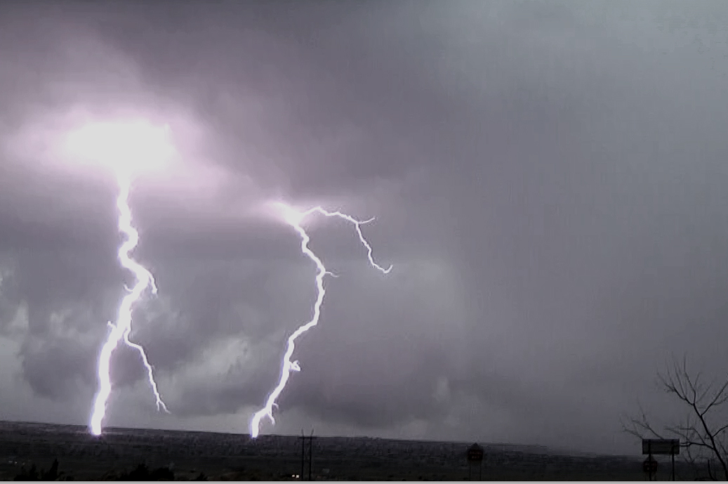 At the second stop at the base of La Bajada, the storm was getting very close, along with CG lightning, so I videoed mostly from inside the car. Here is a video frame capture of some of the lightning - it is somewhat blown out by the brightness of the lightning but gives you an idea of the intensity of the CG lightning barrage: