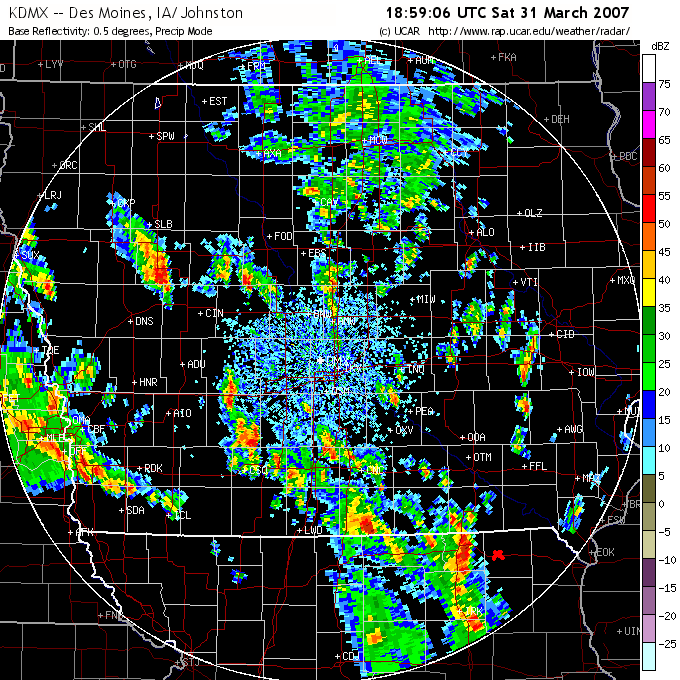 Davenport Radar, 2:59 pm - I am near Granger, MO, watching storm to my west that produced a couple lowerings. The next storm north in Iowa looks nice on radar, but with it racing north, I could never have caught it.
