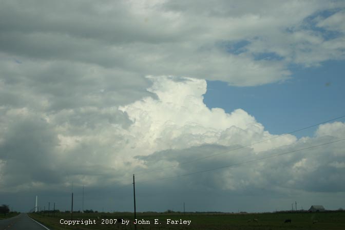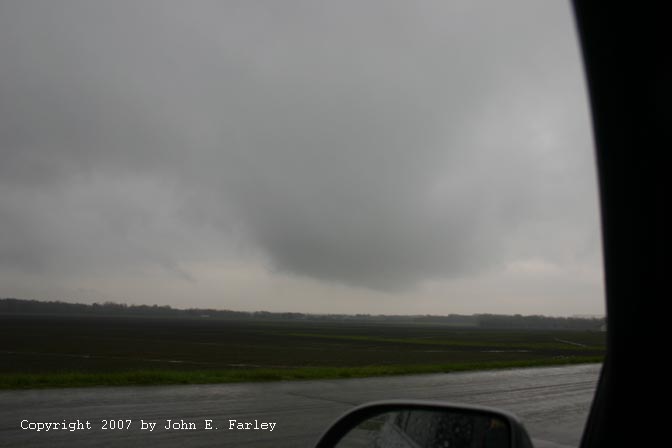 This feature formed just after I had driven under the updraft between the two cells. This feature had looked better a few minutes earlier, while I was getting off the freeway and trying to find a safe place to stop, but by the time I got where I could stop and get a picture, it was already wraping up in rain.