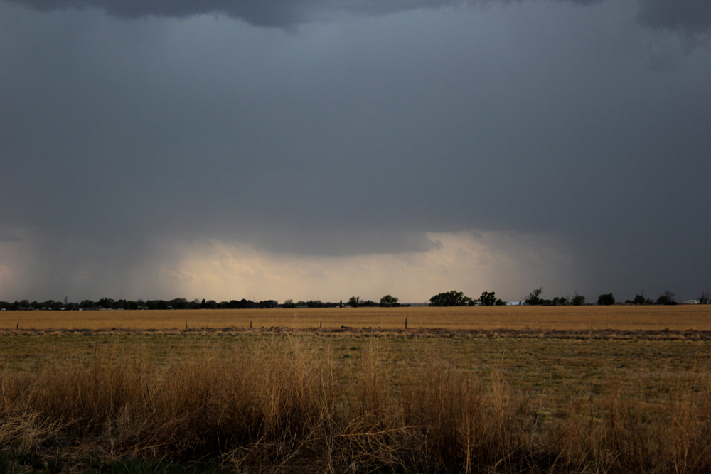 5:20-5:45 - Just north of Friona I photograph a wall cloud, in the distance off to my southwest. The wall cloud never extended real low from the cloud base, but at this time it was more than I could see at most times. Here is a picture: