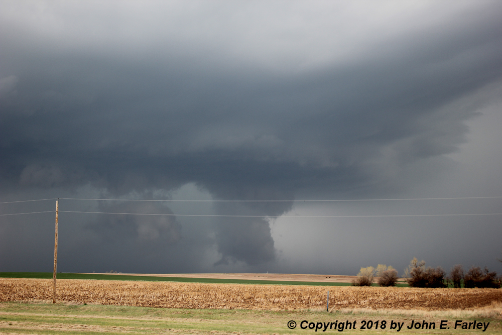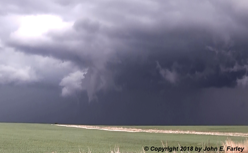 After this, however, things got more complicated. I turned east and, somewhere south or SSE of Susank, I saw a couple possible funnel clouds to my northeast. Here is a view from this location:
