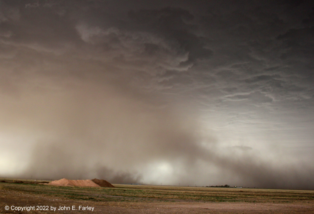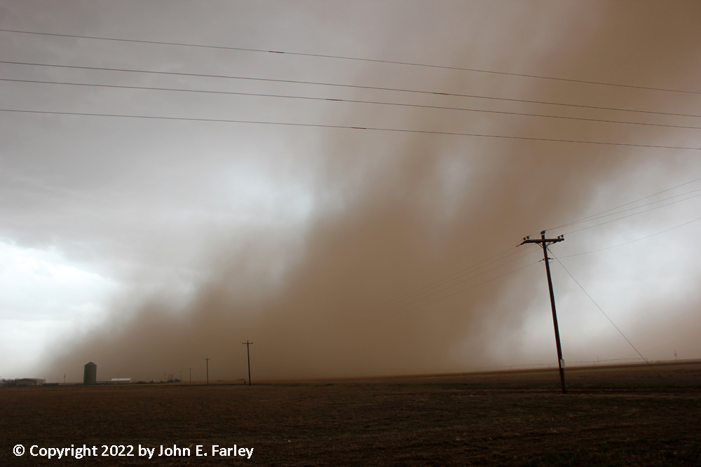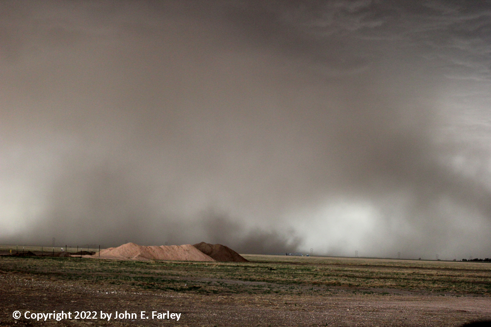 6:00-6:30 CDT - Heading east on 87. It splits from 385 at Hartley and heads east toward Dumas and Stinnett. The precipitation narrowly missed Hartley to the north, and tracked east just north of 87. As I head east, I begin to run into bands of intense, dusty inflow surging north into the storm.