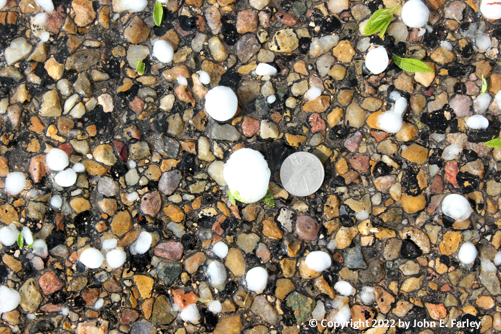 8:00 CDT - A heavy burst of hail, but not very big (1/3 inch?) and I am under the roof. Around this time, a brief landspout tornado apparently occurs in Fritch, about 15 miles to my west.
