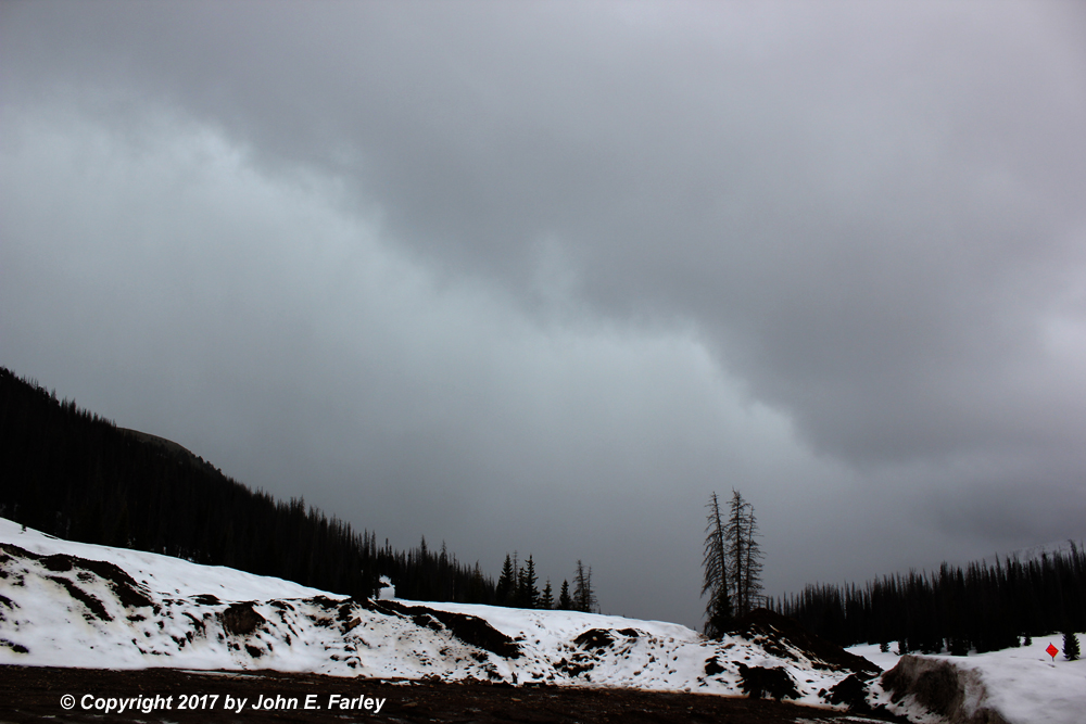 3:15 - I arrive at Wolf Creek Pass. Dark convective cloud bases are visible to the east.