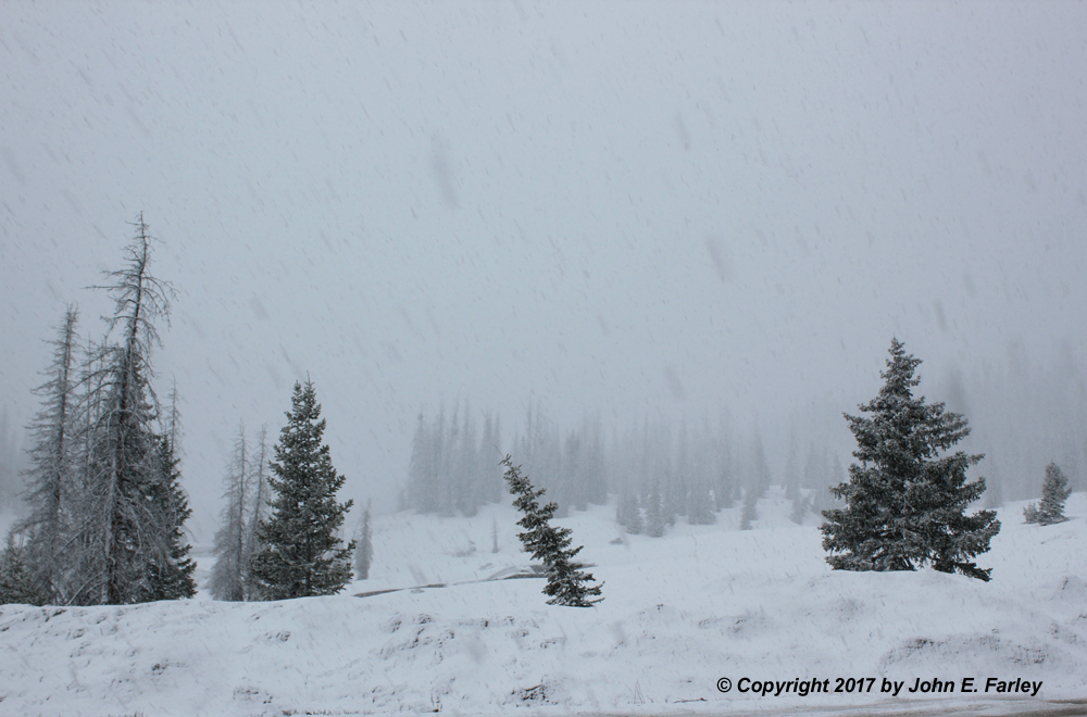 3:30-4:00 - Thundersnow! Over the course of this approximate time, I experience at least 13 rumbles of thunder with snow falling. The storm begins with brief mixtures of graupel and hail with ordinary snow, but within 5 minutes the precipitation becomes all ordinary snow. And it remained that way thereafter. By 4, when I had to leave, snow had accumulated a half inch with rumbles of thunder every few minutes, and I saw or recorded 2 or 3 visible flashes of lightning. I later heard a report that the snow eventually accumulated to 2 inches around the top of the pass.