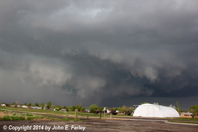 Shortly after taking the above picture, I video very low clouds and hail shafts wrapping around it, appearing to pass just north of Bennett.