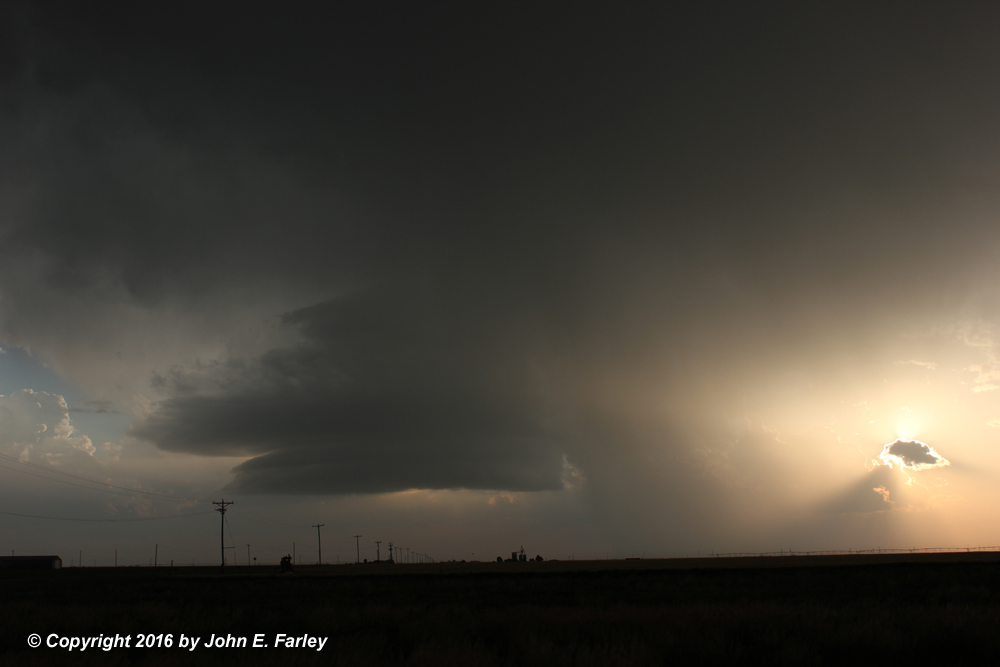 As I headed toward Amarillo to find lodging for the night, I stopped for gas and encountered very strong, cold outflow from the now-collapsing storm, which by this time had no updraft and very little remaining precipitation. But the wind was probably at least 50 mph, and sent a lot of small debris flying through the area of the gas station. All in all not a bad chase for a day in which I was mainly pre-positioning for subsequent days' chases, and another in a string of chases in which I have seen very pretty LP storms.