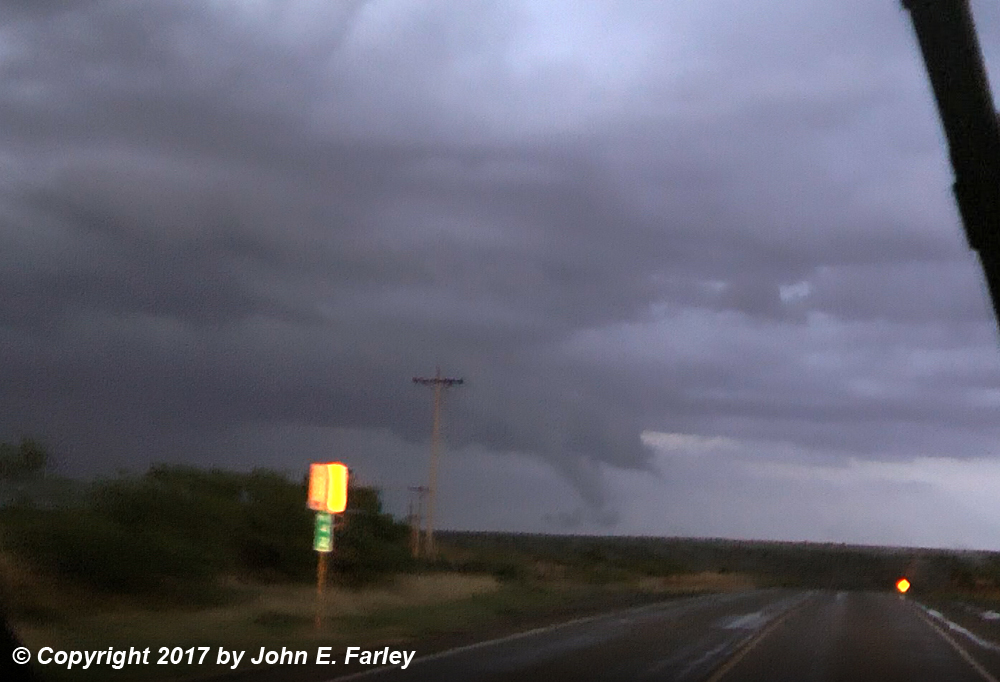 Here is a video showing the wall cloud, rainfoot and lightning at my first stop after I punched under the updraft and through the rainfoot, and also showing the lowering around sunset: