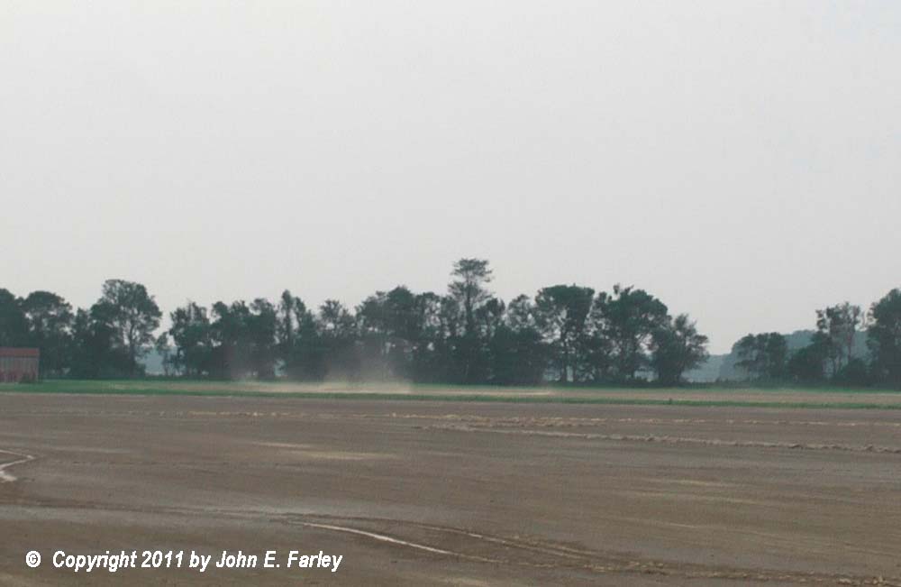 The dust swirl doesn't show up well in this picture, but it was there, directly underneath the nub funnel. In fact, as noted above, I saw the dust swirl first, then, looking up above the dust swirl, I saw the funnel. This tornado lasted about 2 minutes. Video of the tornado and of the features that preceeded it can be seen here: