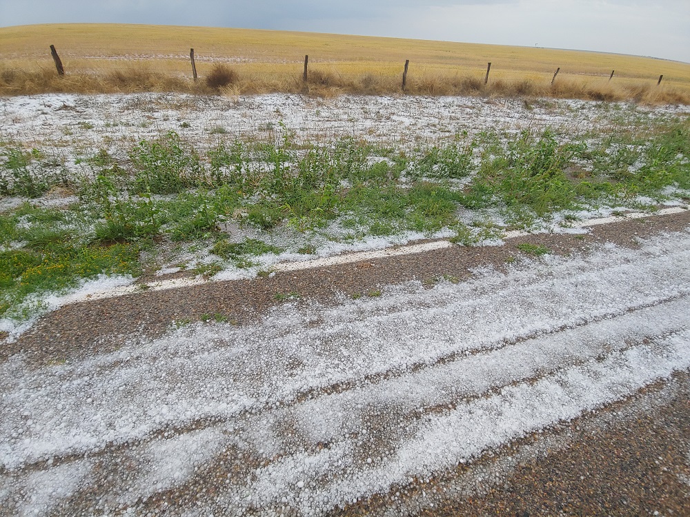 Again, it looked like it would be a late show, which gave me time to visit Billy the Kid's grave southeast of Fort Sumner. Interesting place to visit if you have some downtime on a chase, and there are good public restrooms there, too. After a leisurely lunch of an Allsups eggroll (yes, they have those too, not just burritos) in a park in Fort Sumner, I noticed that a strong storm had gone up just east of the Sandia/Manzano mountains around Estancia and Moriarty. I did not go after this storm for two reasons. First, although there was indeed a narrow strip just east of the mountains where several models were forecasting high instability and good wind shear, the overall parameters seemed better farther east, in the area SPC flagged as enhanced risk. Second, the pattern the previouis two days had been for strong storms to go up in or near the mountains, and even become SVR warned, but the better storms went up later over the eastern plains. Congratulations to the handful of chasers who ignored these considerations, because those of them who were sufficiently patient were rewared by a couple of late afternoon tornadoes near Encino - tornadoes I could have very easily have seen if I had gone after that storm and stuck with it for 4 hours or so. From 1:20 through 2:30, the storm produced up to 1.5 inch hail, which broke some house windows. And around that time, it already got a couple tornado warnings, although apparently there were no tornadoes then. It then weakened for a while, but pulsed up again by around 4:30. producing up to baseball-sized hail and, around 5:30, at least one and probably two tornadoes near Encino. But I, and most of the chasers who were out that day, did not see them, because we stuck to our forecasts and were on storms farther east. I still think most of the time it is best to stick with your original forecast, but this is one day it was not in my case.