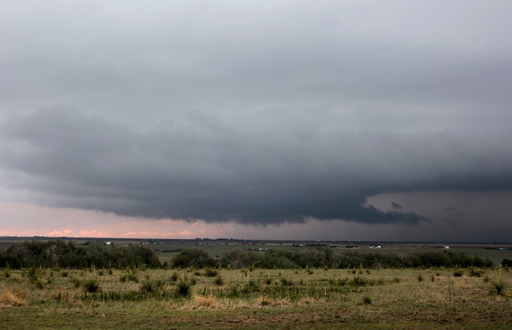 The storm continued to produce up to 1.5" hail along its path from north of Clovis eastward to Pleasant Hill from 7:00 to 7:30 p.m. The pictures above were taken during that approximate time frame. As sunset neared, the storm took on some nice colors as it drifted east toward Texas. However, it also seemed to be weakening, and I needed to get a place to stay, so I broke off and headed back to Clovis, figuring rooms might be scarce due to the number of chasers combined with a holiday weekend. Fortunately, I was able to find a place, and also was finally in a time and place where I could get a real dinner for the first time on this storm-chasing trip.