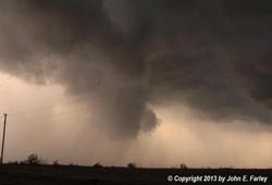 Shortly later, around 5:20, I had to jog south a few miles on 183 in order to continue east on 47. When I did this, the storm immediately overtook me, and I encountered rain and intense crosswind from the west as I went south to where 47 turns east again. Around time, a 58 mph gust reported just north of Putnam, not far north of where I turned south and was overtaken by the storm. Other locations in the Texas panhandle and western Oklahoma received wind gusts as high as 70 mph from this line of storms.