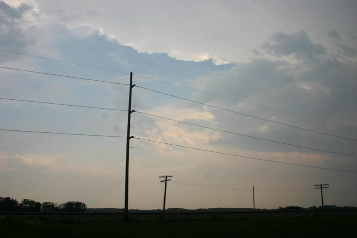 I decided to wait and watch, since I had a lot to do, and the likely action would be pretty close to my north or northwest. Around 2:00, as storms began to develop southwestward along the outflow boundary and a tornado watch was issued, I decided to head out, with a preliminary target of somewhere from Springfield in central IL to Jacksonville, about 30 miles west of there. Once I got close to Springfield, though, it was evident that the best storms were west of there, so I headed west toward Jacksonville.