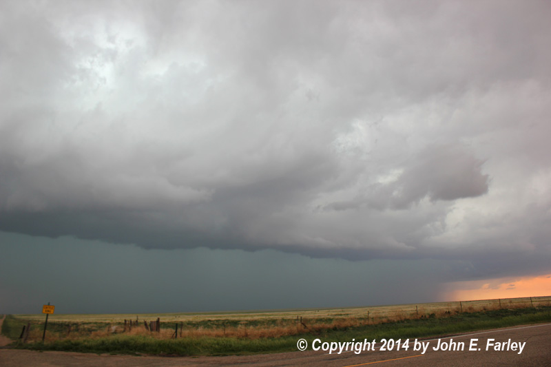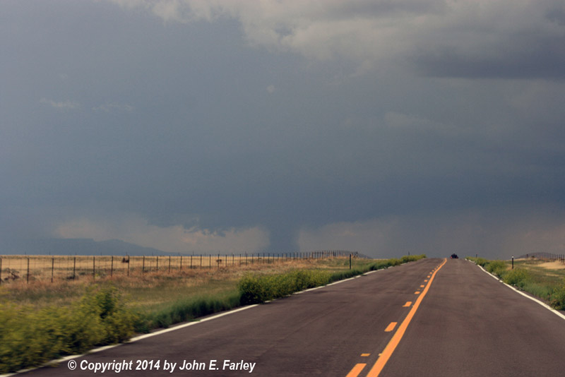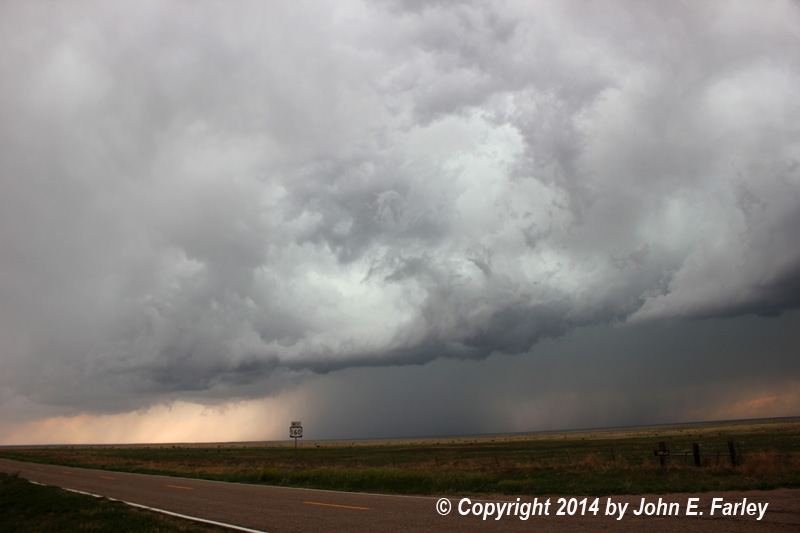 About 10 miles north of Kim, I stop to watch the storm to my SE and get some pics of the increasingly impressive mammatus that has formed: