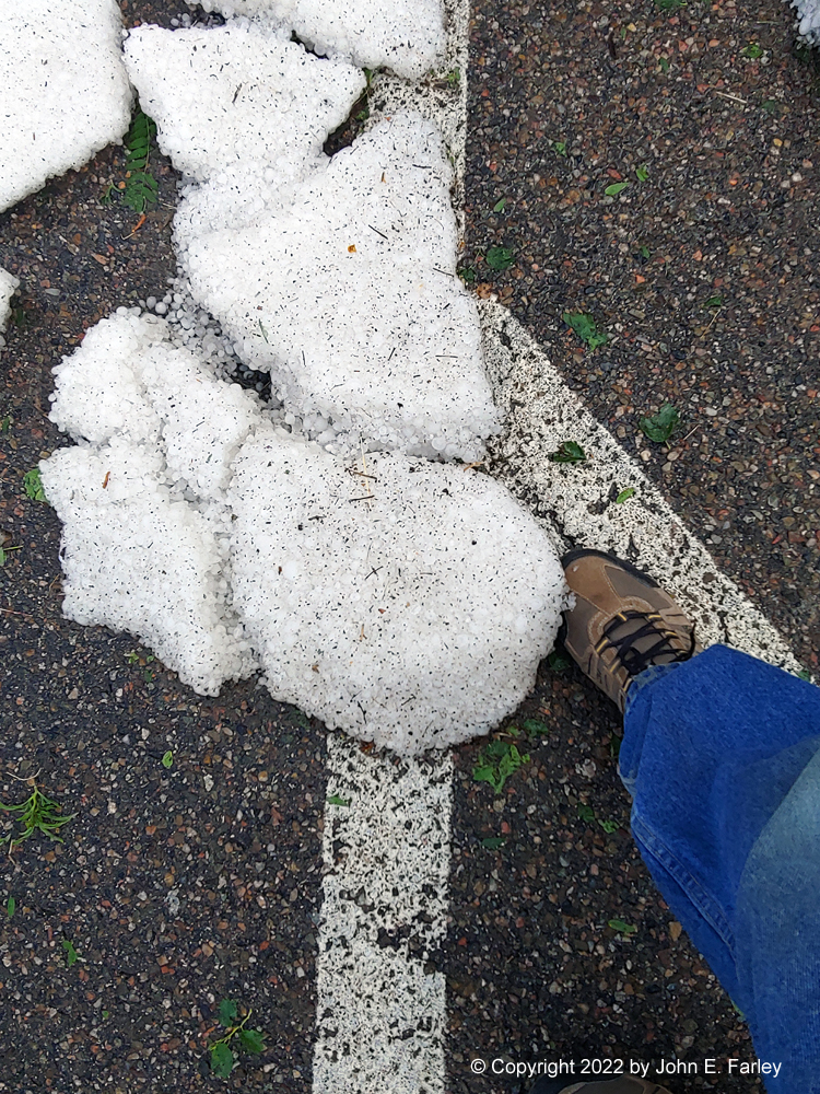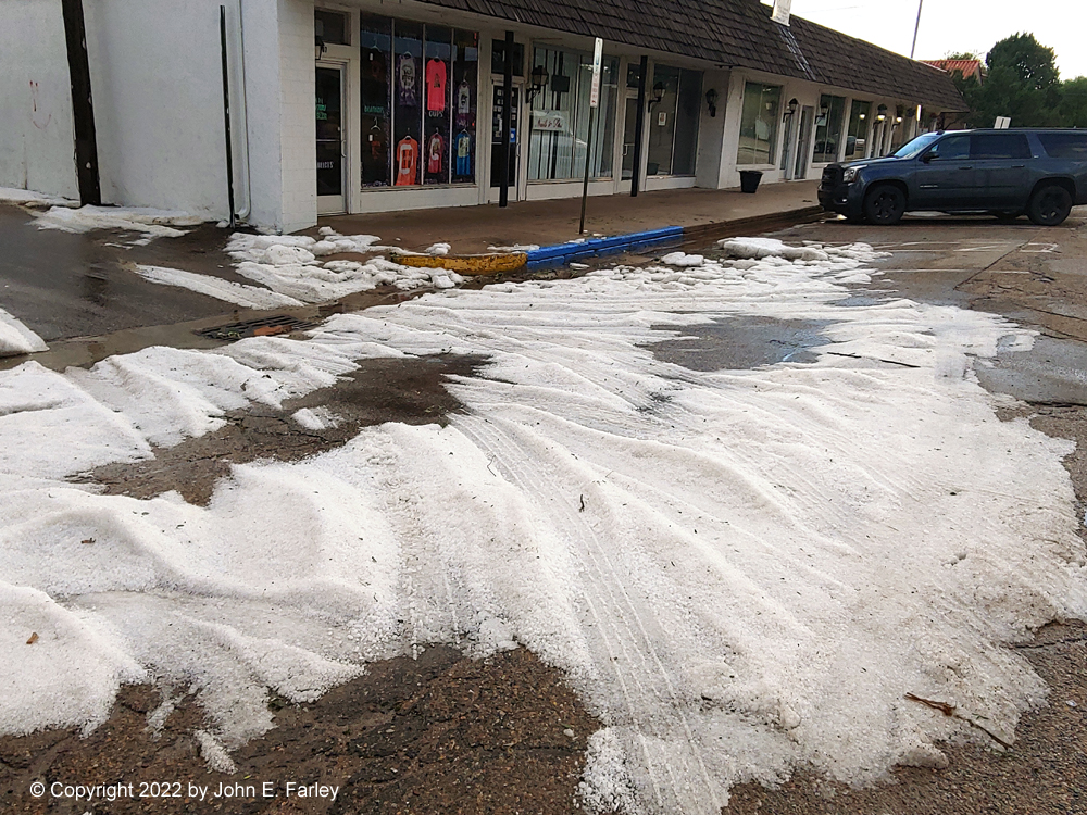 A bit later, after I found a motel and went downtown for dinner, I found areas of the downtown streets where the hail had washed in to a depth of over 6 inches: