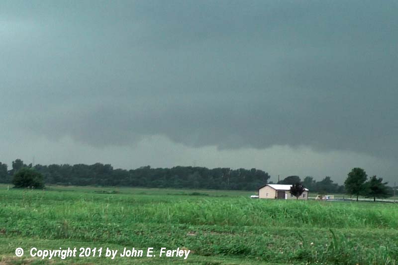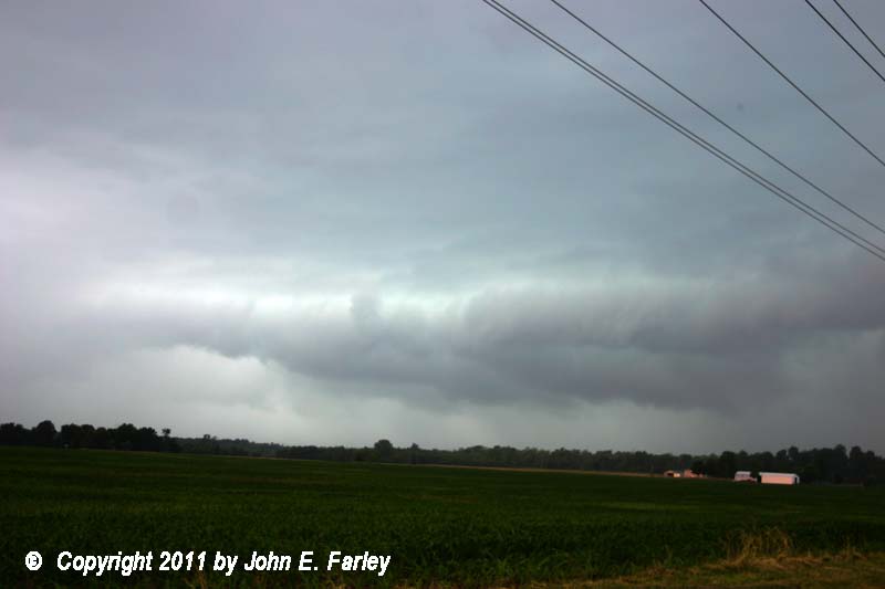 The leading edge of the arcus cloud with this storm - the dark cloud along the horizon - extended about 10 miles ahead of the precipitation. When I took this picture in Edwardsville, the leading edge of the precipitation was still near the Mississippi River, with the storm still mainly over Missouri - but the leading edge of the arcus cloud was over me a minute or two later, by the time I left this spot.