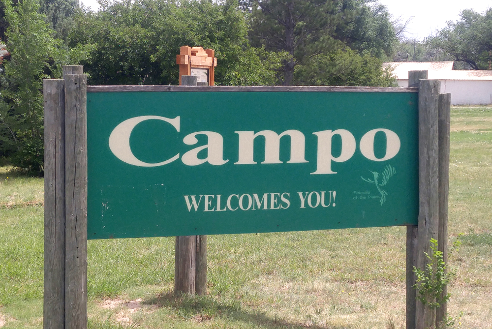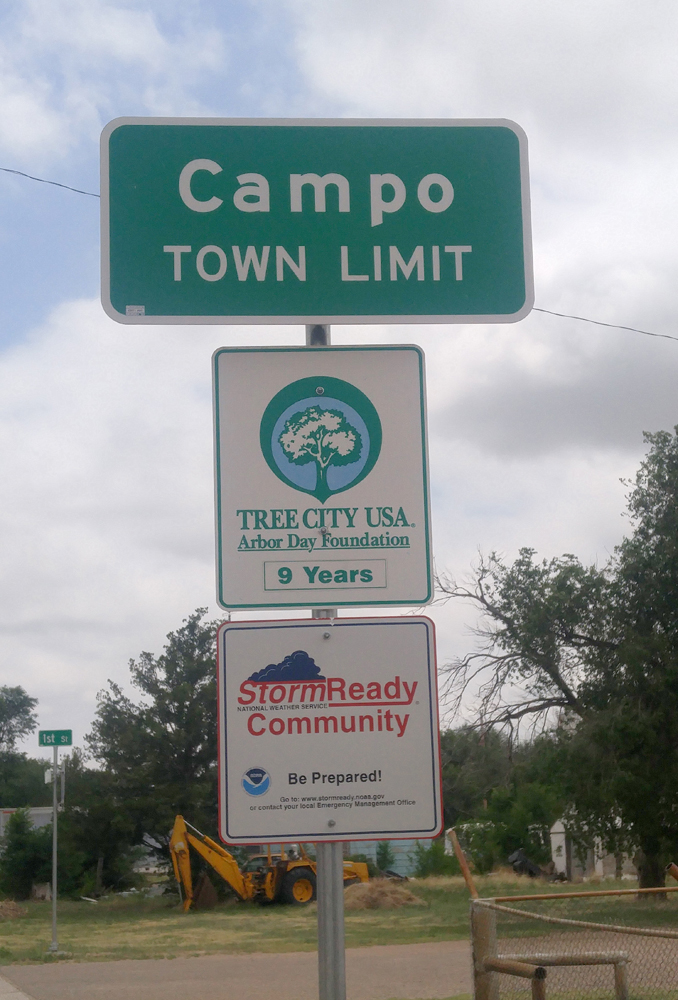 Figuring I would be chasing either in the Panhandles or in CO or northern NM, I knew I would not have to go too far from my overnight stay in Lamar, CO. I initially repositioned south to Springfield, CO, to wait there for more data and decide what to do. Had time for a leisurely lunch and a drive 18 miles south and back to check out Campo, CO, where I had never been, having missed the big day there some years ago. Good to see they are Storm Ready! By around 2 or 2:30, it was becoming evident that the way to go was east on 160 toward Trinidad. Storms seemed likely to fire near the mountains and move onto the plains in that area, and I would also have options to cut south into NM.