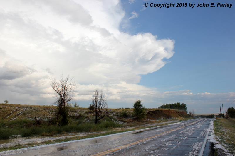 Hail swath, storm in background to SE.