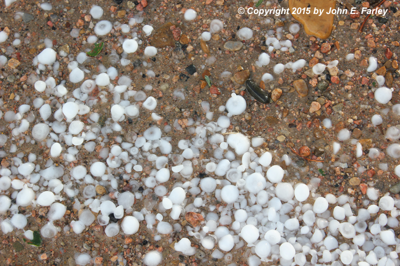 Largest stones looked to be around an inch, though I did not stay long enough to measure as I was still trying to catch up to storm.