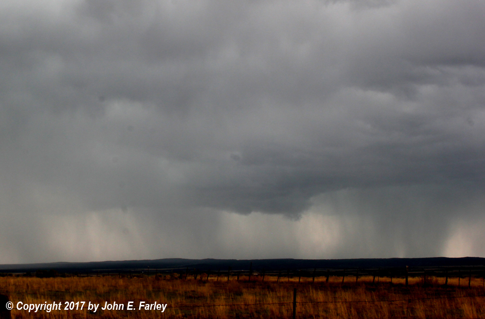 After getting as far as Mancos I noticed a nice storm on radar just west of Farmington, NM and figured I could catch it by doubling back to Hesperus and heading south on CO route 140 as the storm moved to the NNE, tracking just west of 140. The storm seemed to hand off its energy to a new, stronger storm that formed just to its north and appeared to take on supercell characteristics for a short time as it passed between Hesperus and Mancos. These pictures were taken from a couple miles SW of Breen, CO looking northwest between 3:55 and 4:10 p.m.: