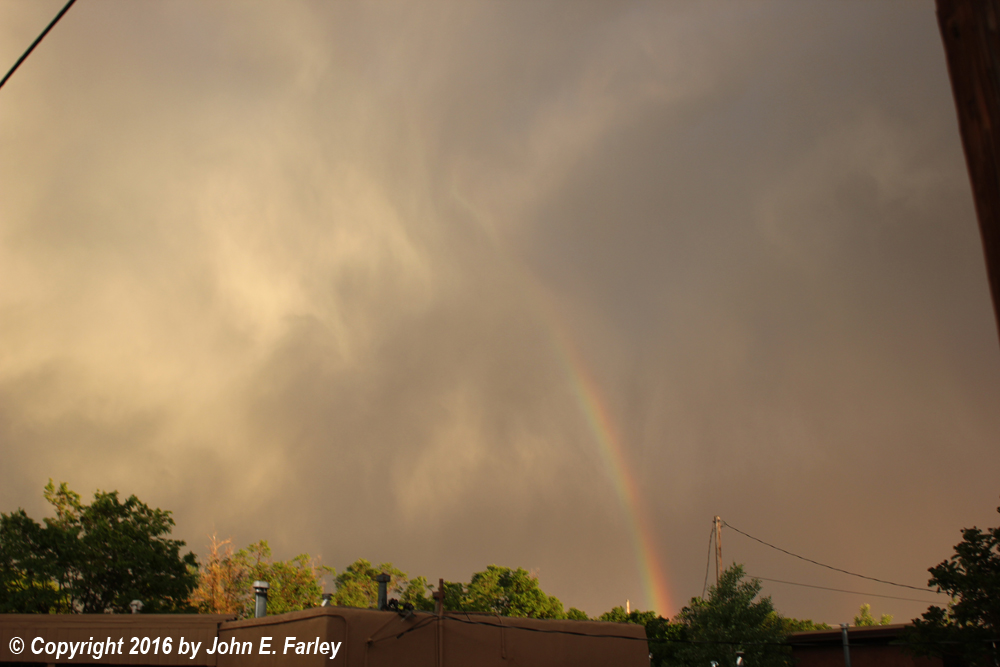 Mammatus formed in the anvil overhead as the storm moved off to the east and southeast of Santa Fe, and as the sun lowered and began to hit the underside of the anvil, a spectacular display of sunlit mammatus appeared: