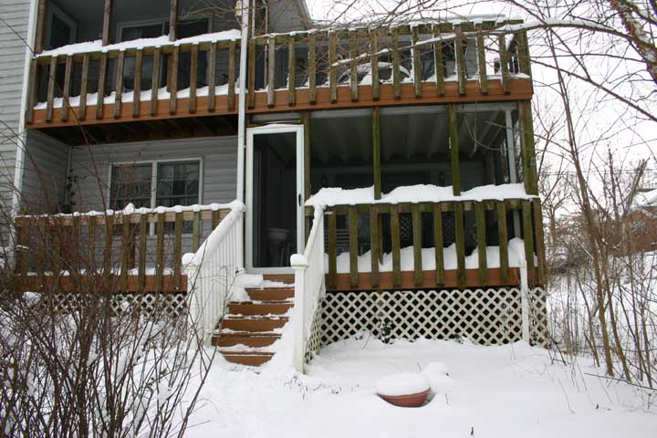 The snowfall began around 11:30 a.m. on January 31. As expected, the initial snowfall during the afternoon, associated with warm air advection ahead of the low pressure system, was light. By around sunset, I had only about 1.3 inches of snow, though some locations in the Missouri part of the area had 2 or 3 inches. It was anticipated that the heavier snowfall would occur when the deformation zone (wrapping precipitation on the back side of the low) passed over the St. Louis area during the evening and overnight, as the low pressure center passed southeast of St. Louis, the optimal track for heavy snow in the St. Louis area. However, through the evening, the deformation zone snow remained spotty, light, and poorly organized. By around 11:30 p.m., there had still been only a little under 3 inches of total snowfall in my location. Perhaps the snow was remaining lighter than expected because gulf moisture was being being robbed by a line of intense thunderstorms moving through Mississippi and Alabama. Altough I did notice some intensification of the snow around St. Louis on the radar, the back edge of the snow was only 100 miles or so from St. Louis, so I expected that the total snowfall would fall below the forecasted 6-10 inches, probably more in the range of 4-7.