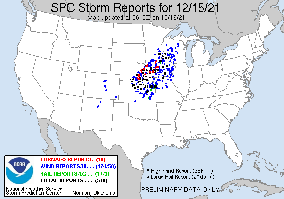 December Tornado Record set in U.S. in Two Outbreaks in 5 Days - December, 2021