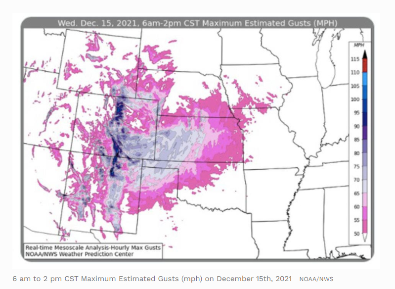 Keep in mind that destructive wind began in southwestern CO and northwestern NM about an hour and a half before the start time of this map, and continued in the Uper Midwest and Great Lakes areas for many m ore hours after the 2 p.m. end time of this map. Truly, this was an exceptional weather event!