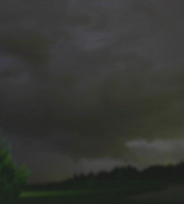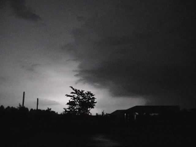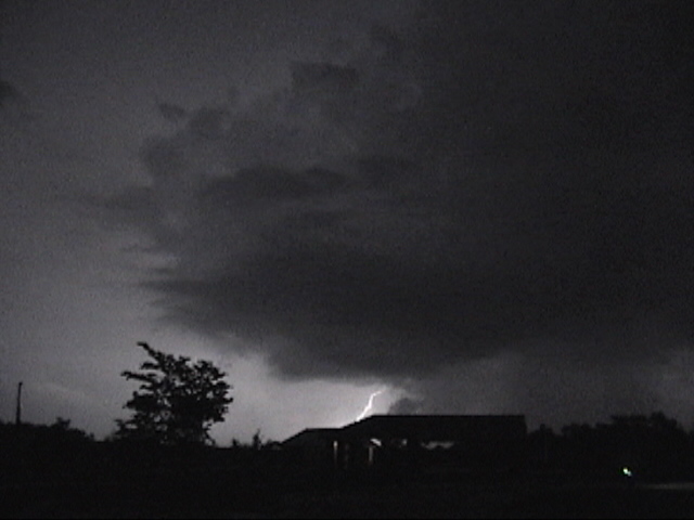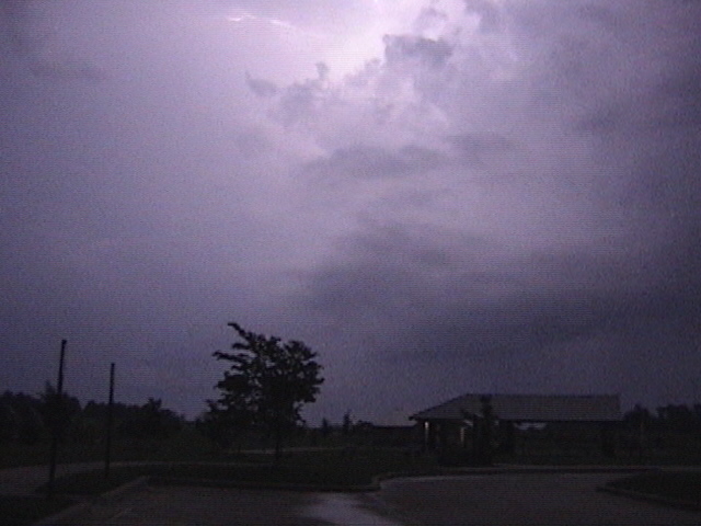 For a variety of reasons, I could not go far from home today, but I did go back to Glik Park for a while to get a good view of the lightning after dark, which was really the most impressive aspect of the storms today. I did not have particularly good luck with either photographing or videotaping the lightning, which was very frequent (several times a second) but mostly in the clouds. Lacking any distant light to use to focus the still camera from my location, I did not get it in very good focus, and a lot of the lightning was not bright enough to show up well on my now rather old video camera. However, I did manage to get a few half-decent video captures: