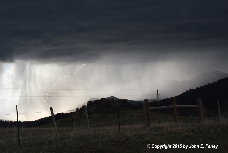 This storm was moving away from me, though, and others to my northwest and west were moving east into the area, so I decided to head up North Pagosa and Piedra Roads to see if I could intercept any of the new storms. The strongest ones were in and near the mountains northwest of town, backbuilding over the Piedra River valley. I began to see CG lightning and what appeared to be hail falling to my northwest, near or north of where Piedra Road crosses the Piedra River: