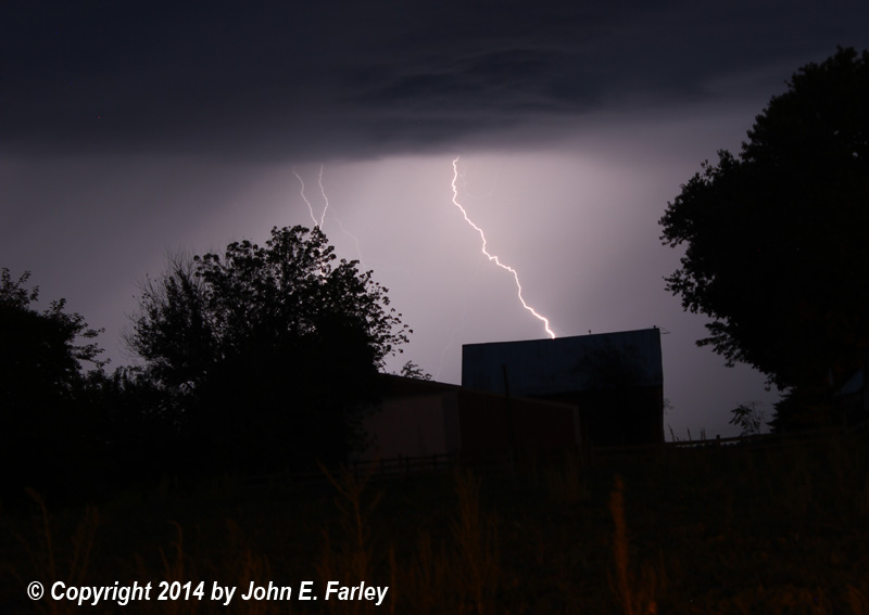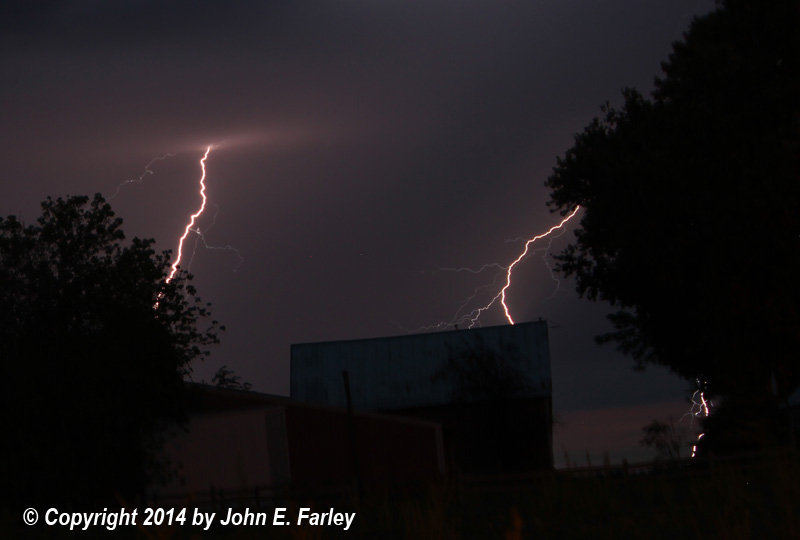 Around 8 p.m., the first storm, elevated and non-severe, passed just north of the Edwardsville area. I was able to capture some of the impressive cloud-to-ground (CG) lightning that occurred with this storm as it passed north of where we were staying in Troy, IL: