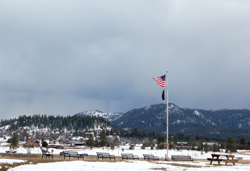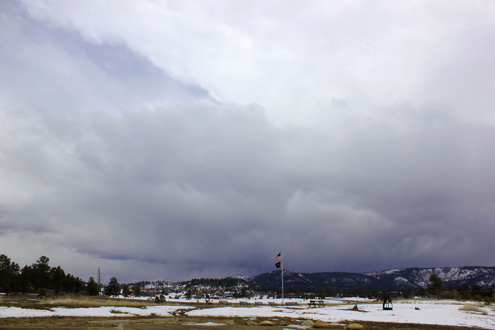 I returned to the original spot where I had seen the first storm, Veteran's Memorial Park. Here I could see the decent structure of what was a developing second thundersnow storm, looking across the mesas to my south that the storm was moving over: