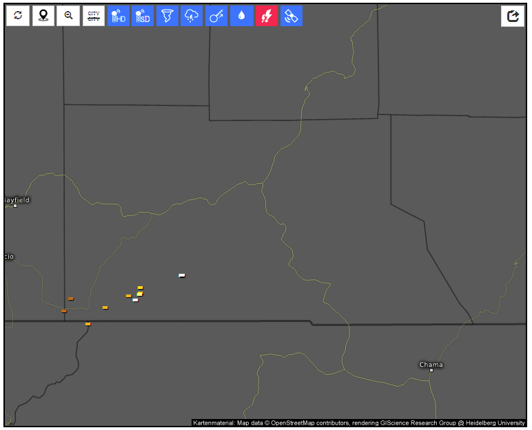 Radar image from 3:33 p.m., around the time the lightning above was captured: