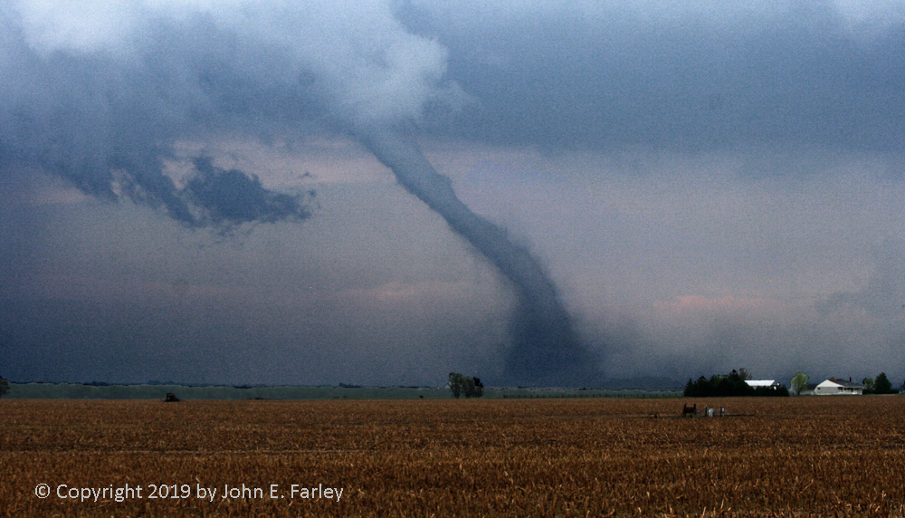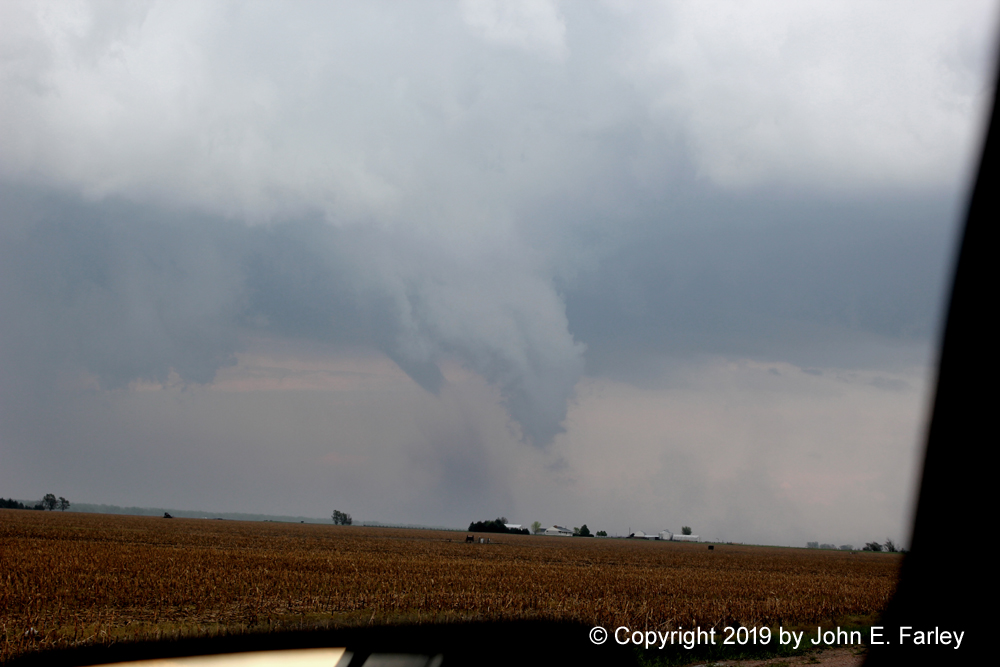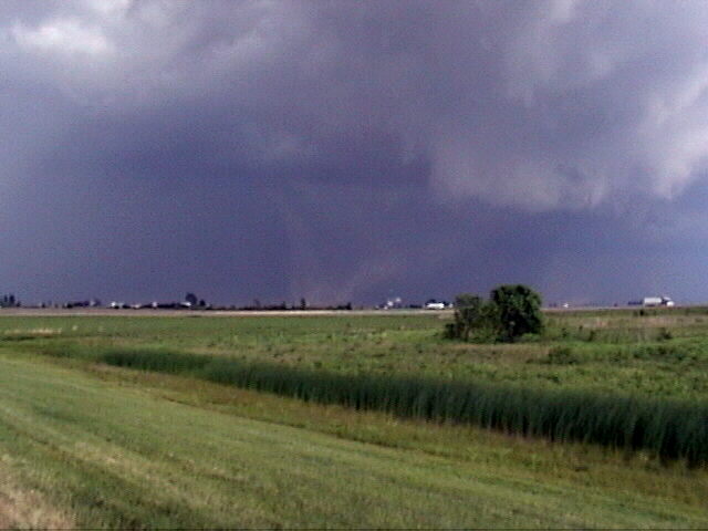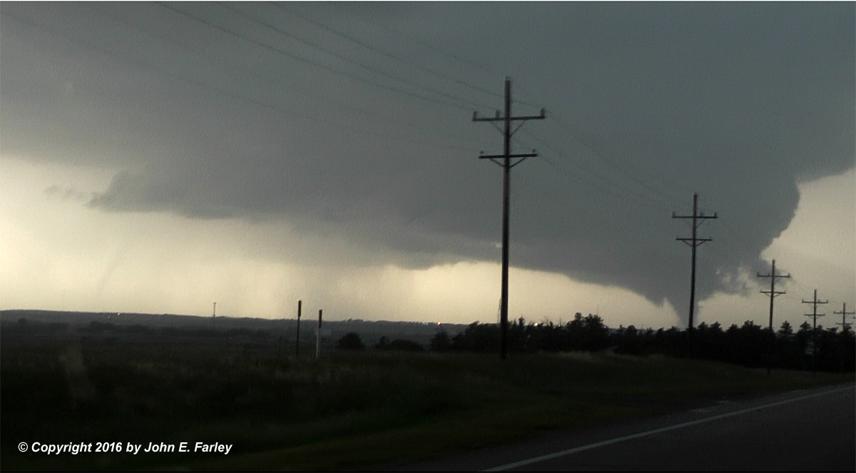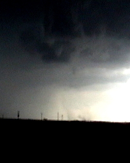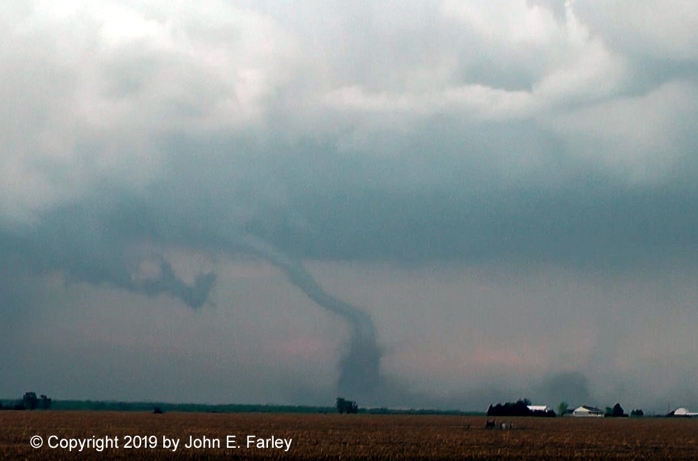 This tornado, somewhat rain-wrapped from some viewpoints, caused damage to farm buildings just west of Larned, but fortunately lifted before reaching the town.
