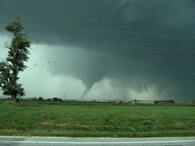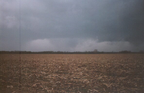 This picture was taken during the early stages of a F1 tornado that destroyed a bowling alley and damaged several houses and a church in Evansville, IL two days before Christmas. It was my first tornado observed while storm chasing. In one location, the tornado downed several large trees while leaving Christmas decorations on a nearby fence untouched. The tornado occurred with an HP supercell embedded in a squall line.
