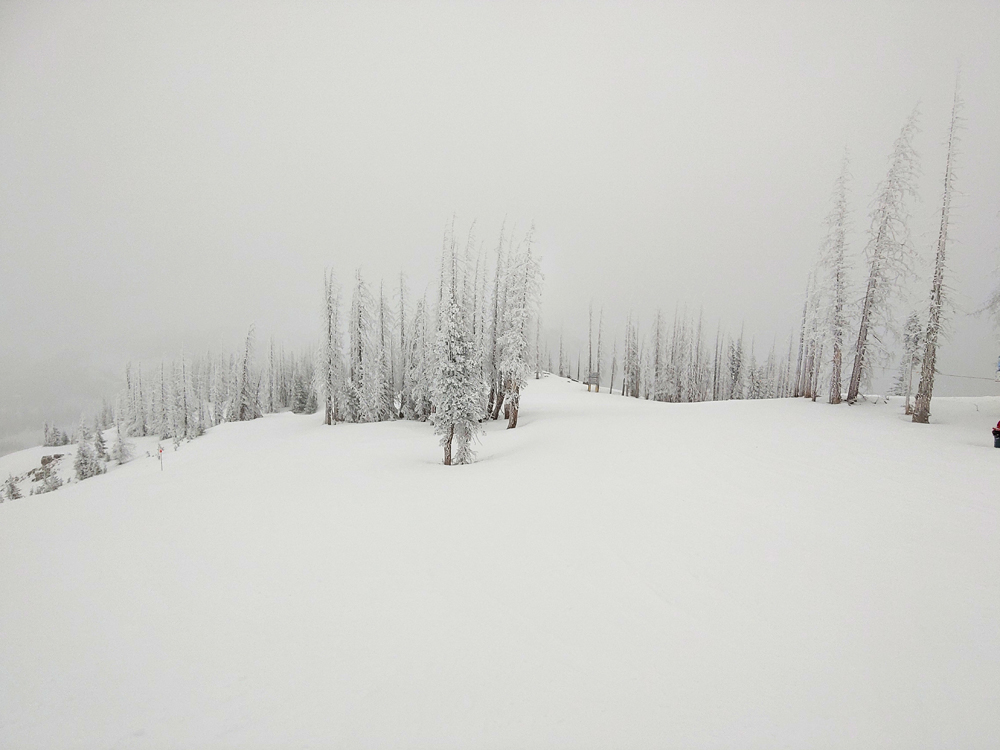 In this image, the first low pressure system is in northern New England, with the second one over Colorado. But note that precipitation is not just falling near the storm centers, but over a widespread area including some areas in between that are not near either of the storm centers. This illustrates the AR character of this event. The fact that it was fairly stormy and unsettlled between the two storm centers can also be seen in this picture that I took while skiing at Wolf Creek on February 4: