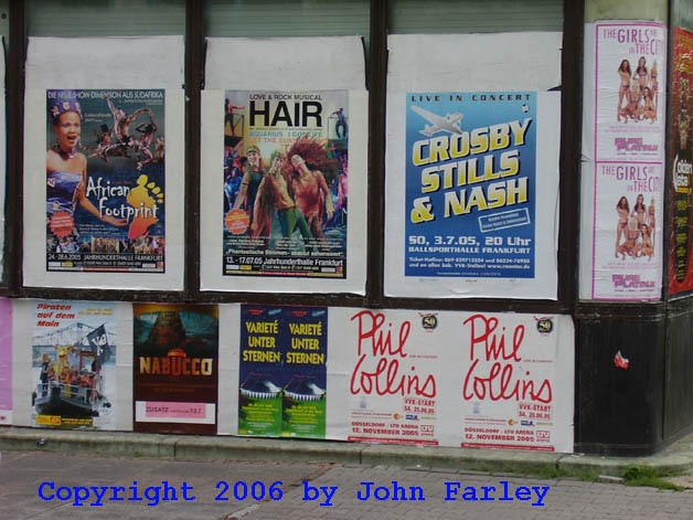While walking the streets of Frankfurt in July, 2005, I encountered this wall covered with posters.