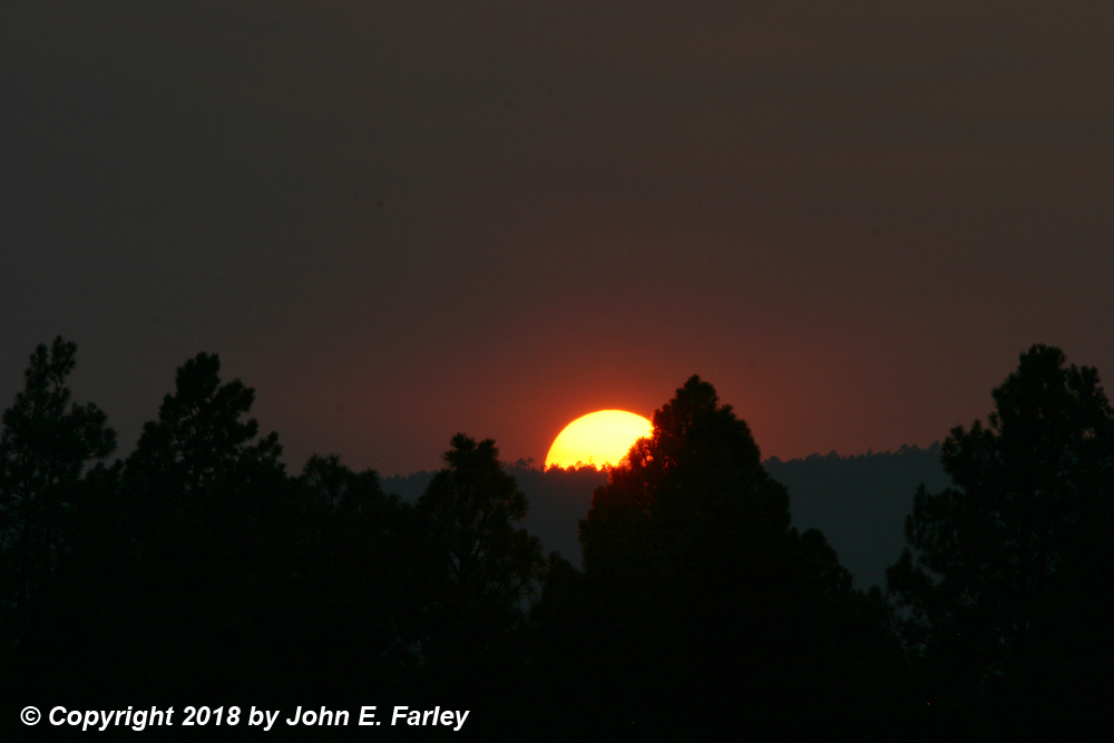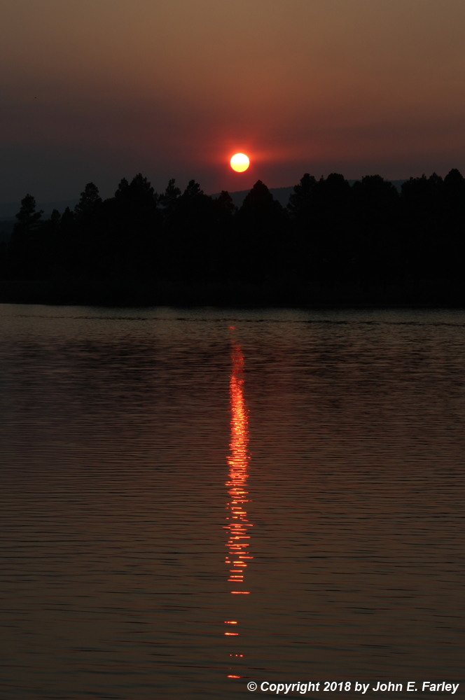 One effect of smoke and haze in the air can be spectacular, colorful sunsets. This has happened a number of times this year in Colorado, beginning in June with smoke from the 416 Fire north of Durango, and then intermittently throughout the summer due to smoke from more distant fires on the West Coast from California northward to British Columbia. On August 7, there was considerable smoke in the air in southern Colorado due to smoke from various fires in California, and particularly the Mendicino Complex Fire, the largest in California history. Here are a couple pictures I took as the sun set over Village Lake near Pagosa Springs, CO:
