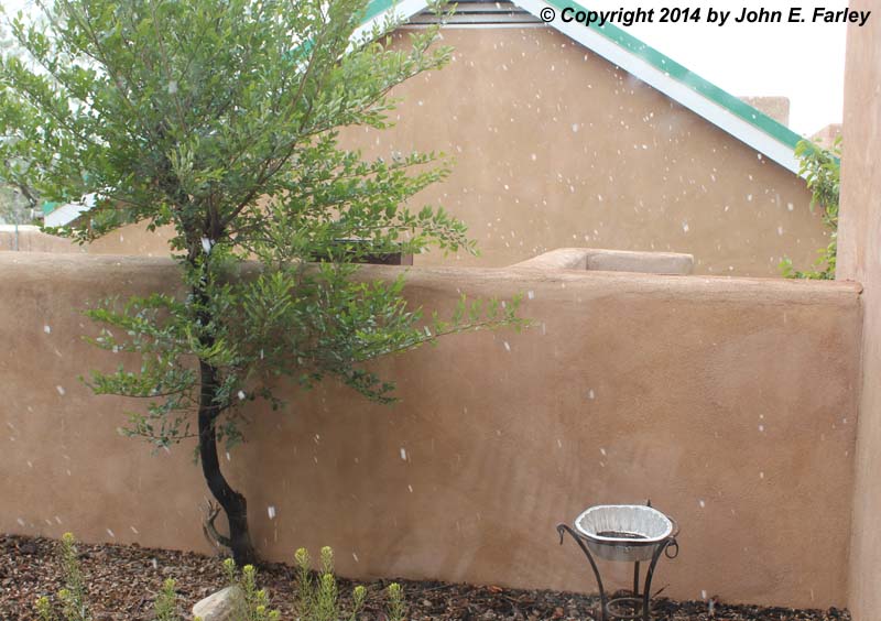 Graupel falling in Santa FE, with a light dusting of it on the ground