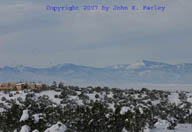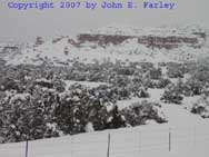 As shown in the next set of pictures, the desert, as well as the mountians, received a lot of snow. In fact, some high desert locations received in excess of two feet. The first picture below was taken near Cuyamunge early the morning of December 31, while the aforementioned low clouds still lingered over the Rio Grande valley. The second picture was taken about a week after the storm about midway between Albuquerque and Santa Fe, and the third picture shows the deep snow cover in and around the Cerillos Hills just southwest of Santa Fe.