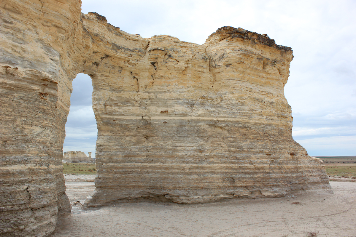 Once I reached Grainfield, there were still chasers and others hanging out at the gas station there. Some were jammed in under the canopy over the gas pumps, even though by then the 2-inch hail that had fallen there had moved on to the north. With darkness setting in, I called it a chase and headed west to Oakley, the closest place where I could likely find a room for the night. Unlike some other chasers who were on this storm, I did not head east to catch the next day's storms in eastern Nebraska and western Iowa, only to return to Kansas or Oklahoma the following day. At 74, I am just too old for that much driving in a short time. In hindsight, maybe I should have, given the numerous photogenic tornadoes that occurred on the 26th in eastern Nebraska and western Iowa. But I really think that would have been too much driving. Even without doing that, I ended my trip a few days later with over 2,000 miles. Instead of chasing, I had a leisurely day drifting southeat to Dodge City to set up for my chase on the 27th, including a visit to a Kansas gem I did not even know existed, the Monument Rocks.