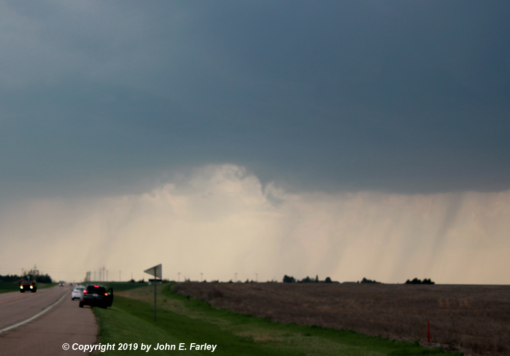 When I saw this feature, I was working north on 83 from Atwood to McCook via Oberlin. I decided to do this because the SPC mesoanalysis showed a more favorable environment for supercells and tornadoes in the area near and northeast of McCook. But by the time I got to McCook, I could see visually and on radar that storms had initiated SW of Atwood, so I went west to Culbertson and from there south on 17 back to Atwood. I first intercepted what would be the storm of the day a few miles west of Atwood, around 4:30 p.m. CDT, with lots of other chasers also watching.