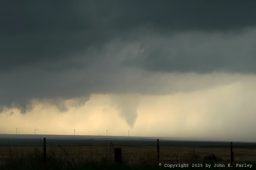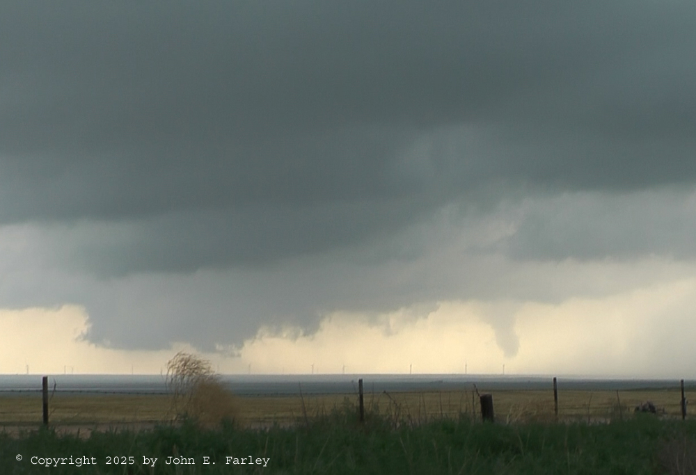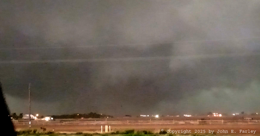 Again, with the low light, quality is not great, but with some enhancement of the contrast I think it makes a pretty dramatic image. The tornado ended less than a mile from where I was taking video, a bit closer than I thought at the time. However, it was probably still a little farther away than that when this was taken.