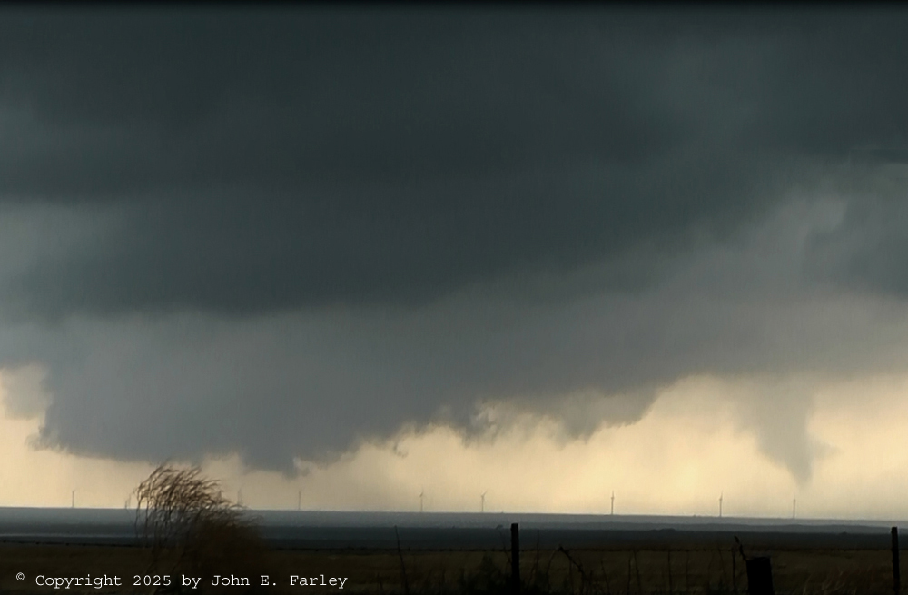With what I was thinking confirmed by the multiple tornado reports, I had done it! Caught up with the storm from behind and gotten to where I could see and document tornadoes. This tornado was rated EF-2 and was on the ground from 6:27 to 6:54. It travelled a distance of more than 9 miles and was more than a mile wide at its widest point, 1935 yards, with peak wind estimated at 125 mph.