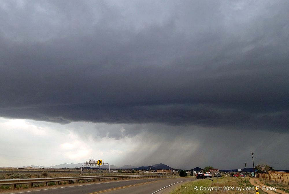 After the storm passed my location, it got two more SVR warnings, and driving back up route 599, the rainfall became so intense that I decided to exit the highway and wait a few minutes until the core was well past me. There was some CG lightning that was pretty close, but I did not manage to capture any bolts. The last of the 4 SVR warnings the storm got extended all the way up to the Taos area, but once the storm got into the mountains, it weakened quickly, and that warning was cancelled.