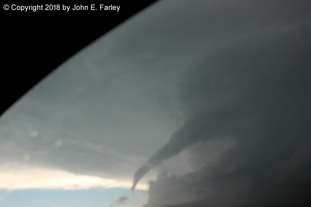 Around 5:05 p.m., it develops a menacing wall cloud which appears to have some rotation: